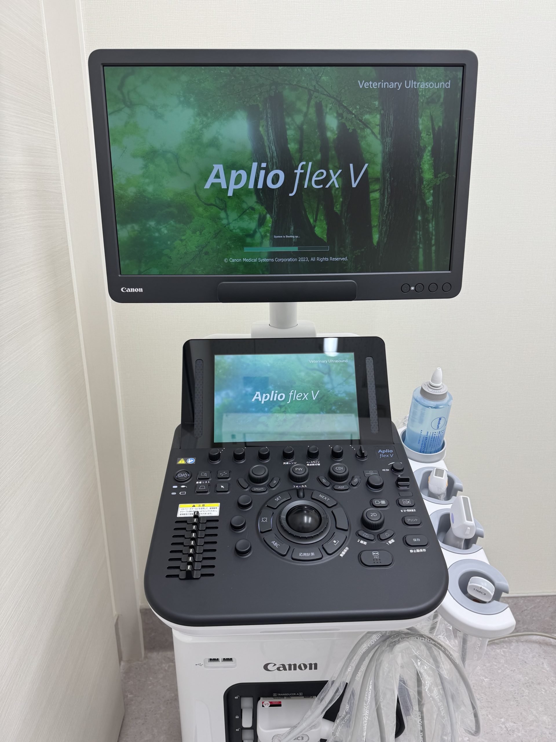 人間の可聴域を超える高周波の超音波を動物の体内に送り、反射して戻ってきた「エコー」を画像化する検査機器です。これにより、麻酔なしで内臓の形や大きさ、血流などを非侵襲的に視覚化し、異変の早期発見に役立てます。