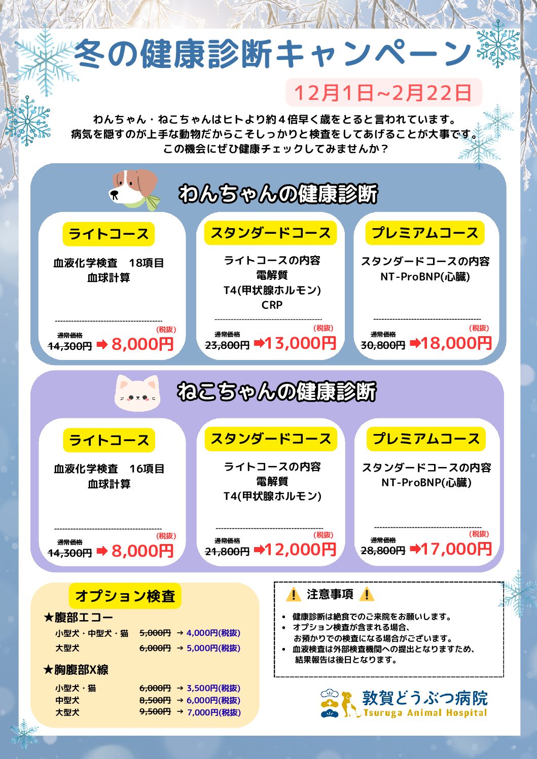 お知らせ 2025年11月30日 冬の健康診断キャンペーン みなさま、こんにちは! 今回は、『Team HOPE(チームホープ)』そして『当院の冬の健康診断』について紹介致します。 まず、Team HOPEについてです。「ワンちゃん、ネコちゃんの健康寿命を伸ばし、幸せなペットライ […]